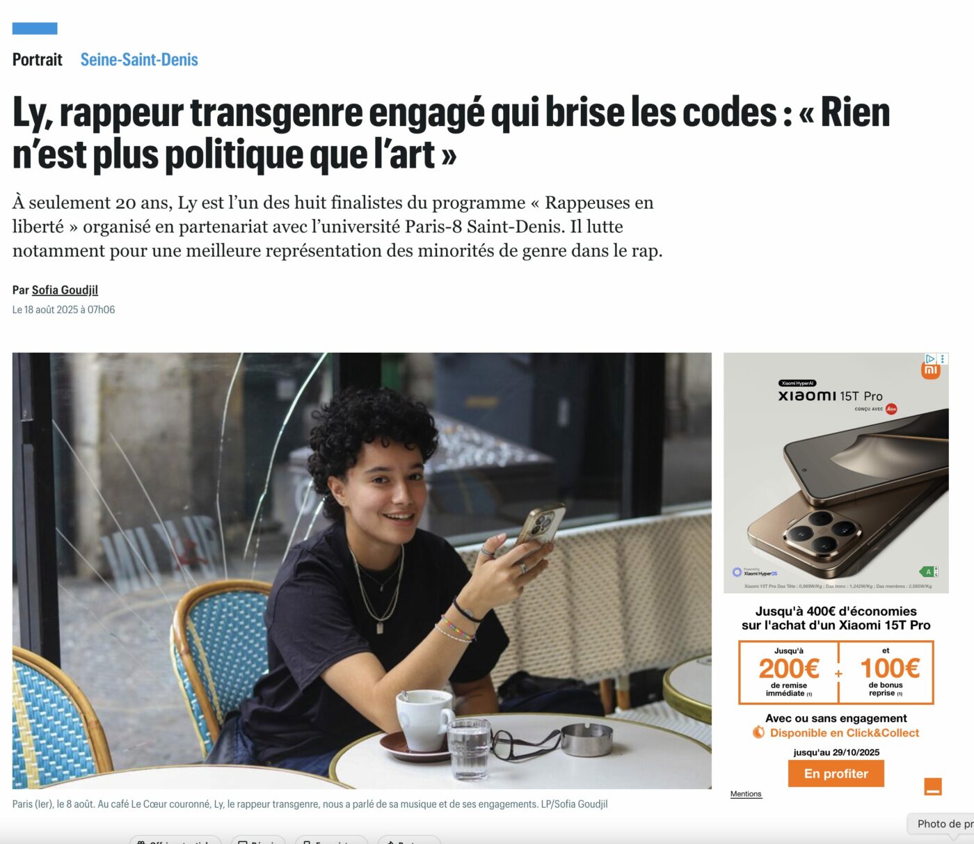 ILS PARLENT DE NOUS L'affiche Logo Le Parisien Le Figaro Le Parisien Le Parisien Sud Ouest Riff'x Konbini Backpackerz sound do beautiful Rap Minute Radio France - Mou'v Génération hiphop soul radio RFI Radio France - Mou'v Mou'v France TV Bet_tv Buzz booster Konbini Her story France TV Le Monde France Inter Telerama LCI Le Parisien 20 Minutes Télérama Le Monde La voix du Nord Konbini Mouv Mouv Booska-p Jack Canal Booska P Generations Period T-REX